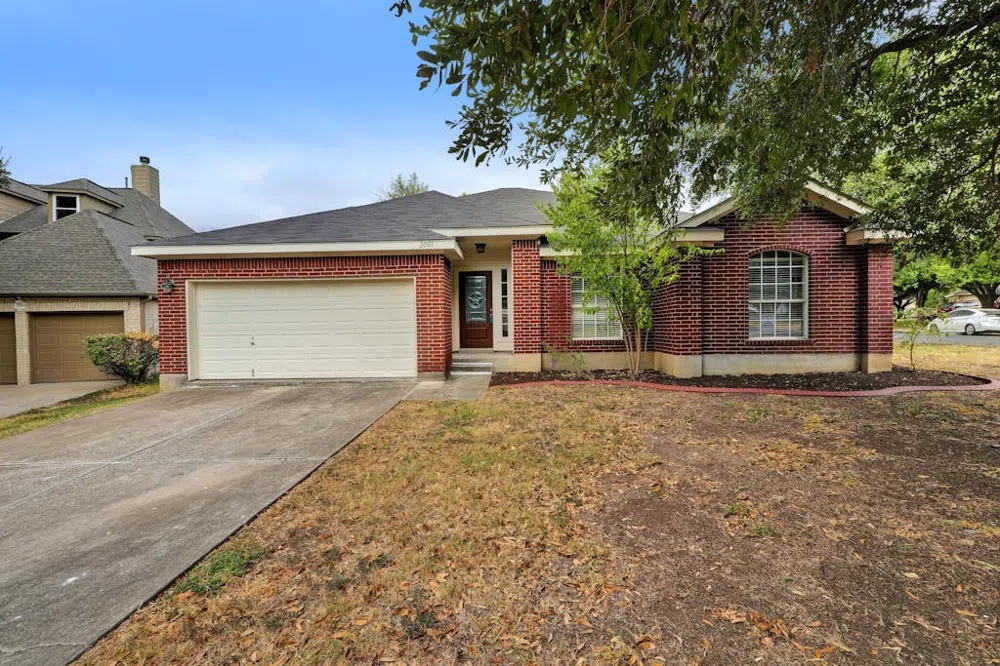 Located on a large corner lot in a quiet cul-de-sac, this home combines modern style with everyday functionality. Step into a spacious, light-filled interior featuring high ceilings and a skylight that brightens the dining area. The kitchen is a chef's dream with plenty of counter space, white cabinetry, quartz countertops, a stylish glass tile backsplash, and stainless steel appliances. Beautiful wood laminate flooring spans the living areas, while practical tile accents the kitchen and bathrooms. Each bedroom is generously sized, and the updated bathrooms add a touch of luxury. Additional flex space, great for office/study or extra bedroom. Outdoors, enjoy a spacious backyard with a covered patio ideal for relaxation or entertaining. With convenient access to nearby attractions like the Round Rock Sports Complex, Dell Diamond, and Kalahari Resorts, and located just one house away from Double File Trail Elementary.